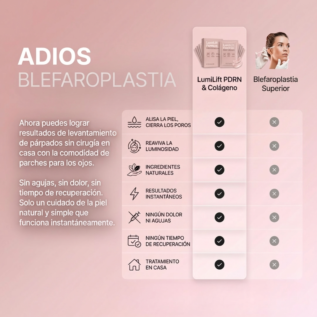 A diferencia de los parches genéricos que solo hidratan la superficie, los de LumiLift realmente infunden ingredientes activos en la piel. Los parches se vuelven transparentes a medida que entregan la dosis completa, así sabrás cuándo ha terminado el tratamiento.